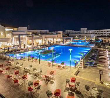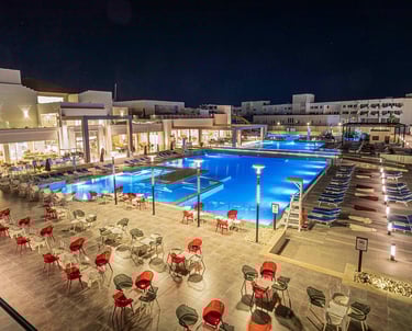 يحتوى الفندق على اكوابارك و حمامات سباحه منها حمام سباحه كبير بطول الفندق و منها ايضا مايخص الاطفال .