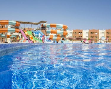 A prime beachfront 5-star deluxe resort featuring a sandy beach, giant aqua park, vibrant entertainment shows, and an ideal location in Makadi Bay.